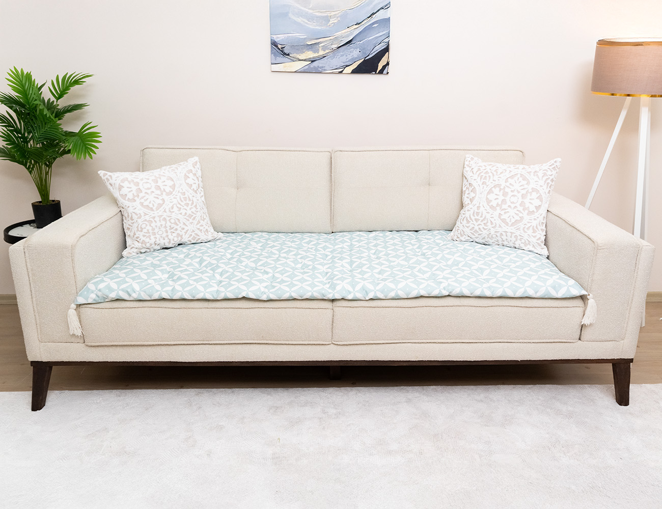 Bej Renk Yonca Desenli Kanepe Koltuk Örtüsü