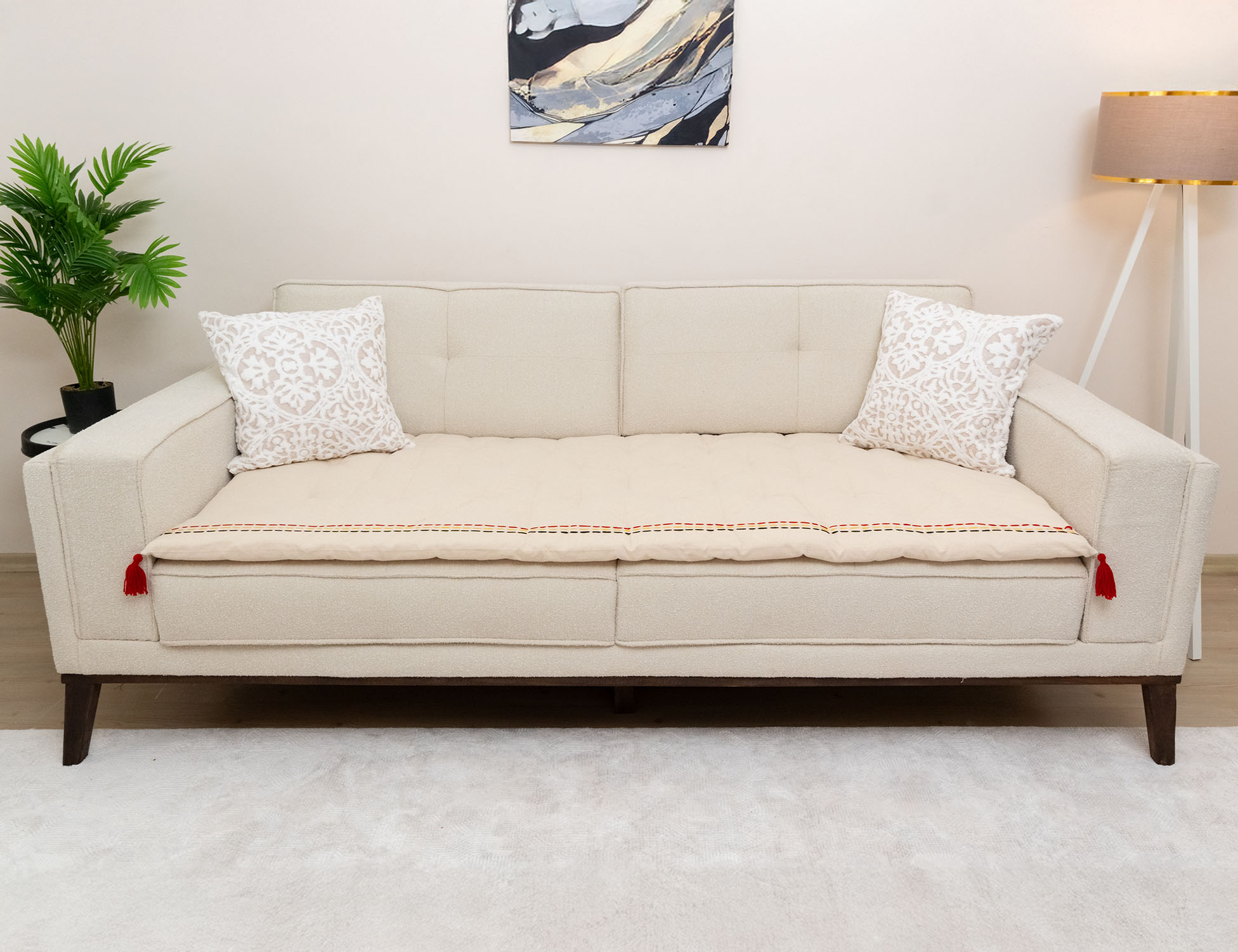 Bej Renk Yonca Desenli Kanepe Koltuk Örtüsü