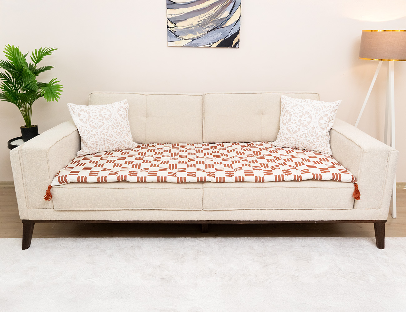 Bej Renk Yonca Desenli Kanepe Koltuk Örtüsü