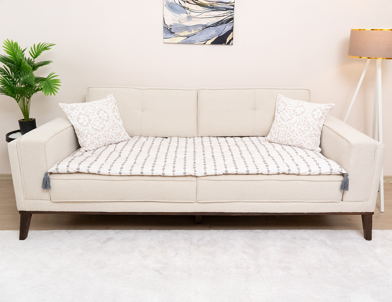 Bej Renk Yonca Desenli Kanepe Koltuk Örtüsü