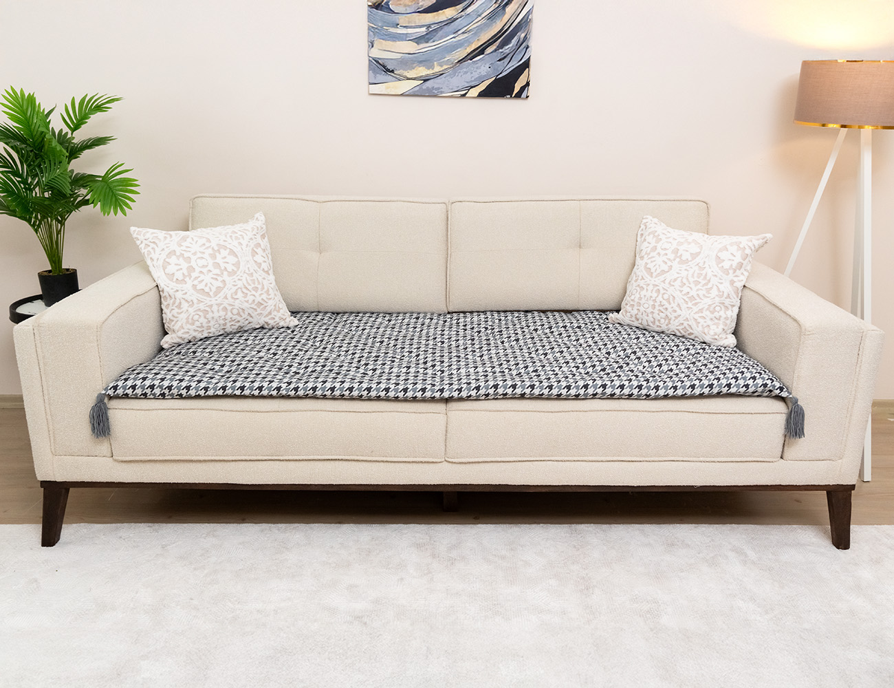 Bej Renk Yonca Desenli Kanepe Koltuk Örtüsü