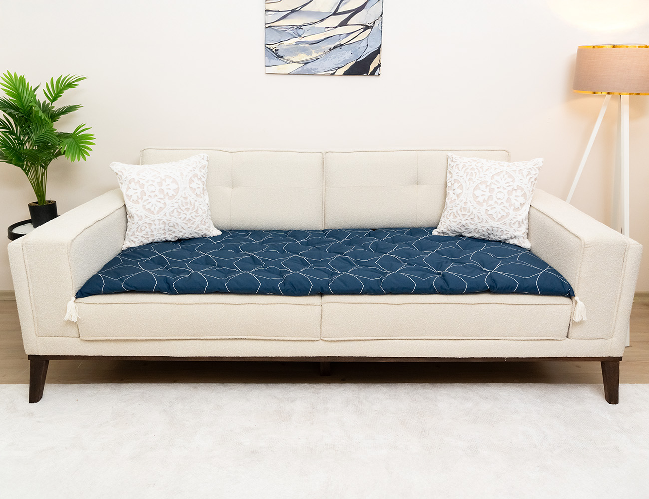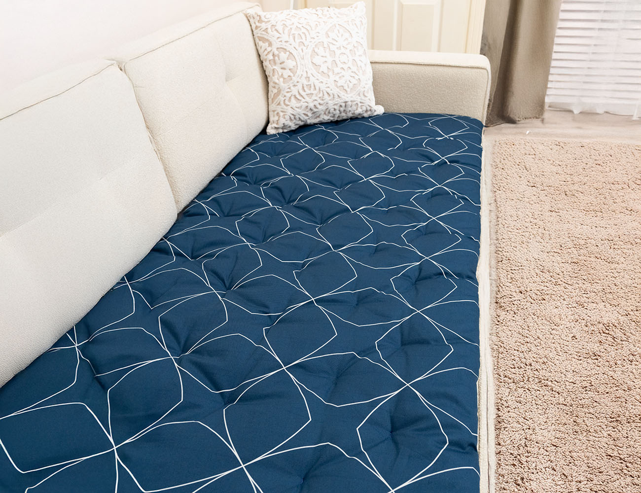 Lacivert Modern Desenli Kanepe Koltuk Örtüsü