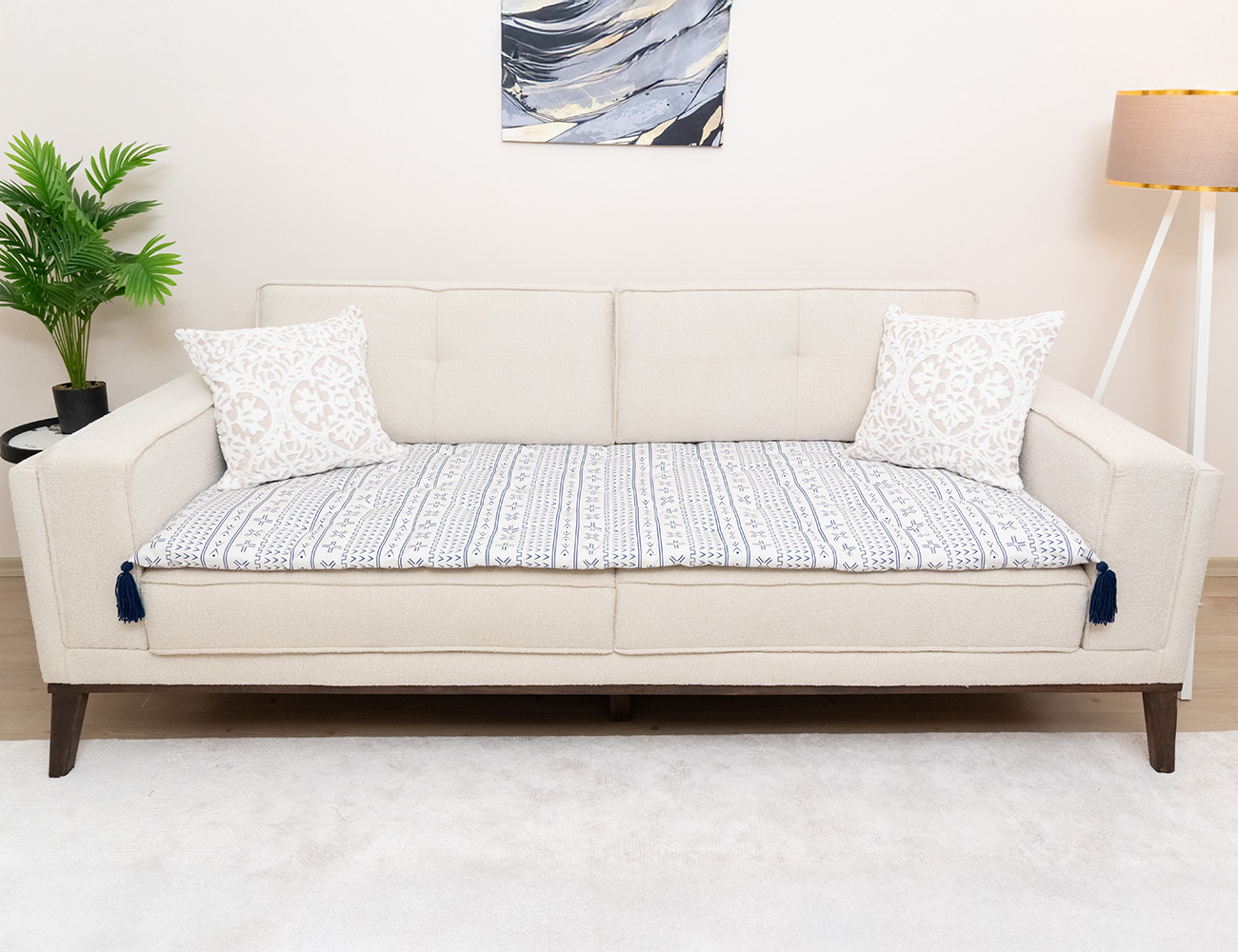 Bej Renk Yonca Desenli Kanepe Koltuk Örtüsü