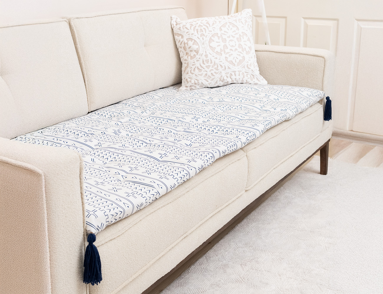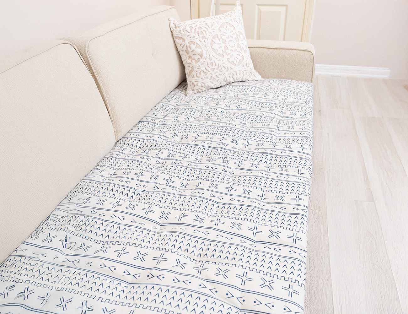 Mavi Beyaz Etnik Çizgi Desenli Kanepe Koltuk Örtüsü