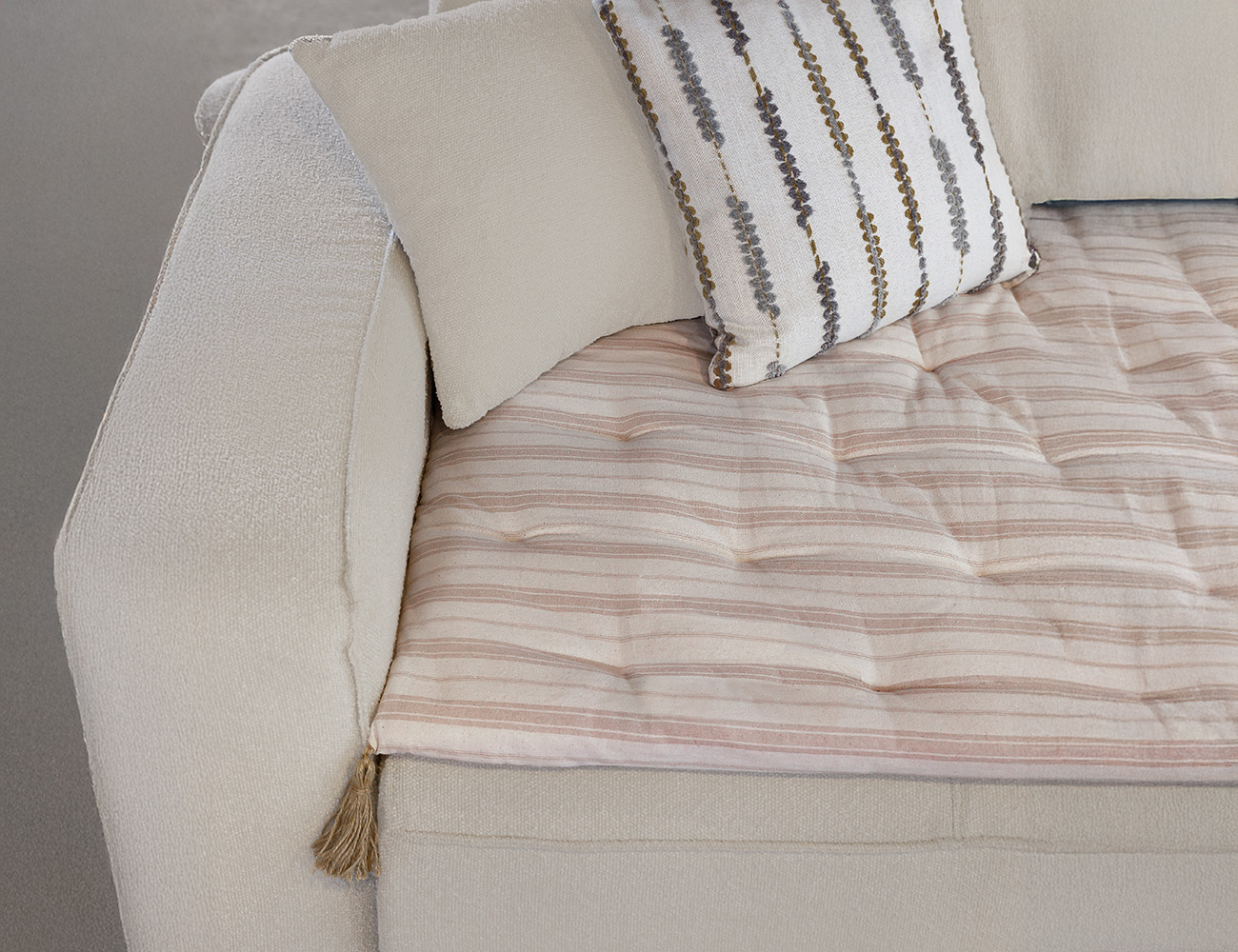 Sütlü Kahve Çizgili Keten Kanepe Koltuk Örtüsü