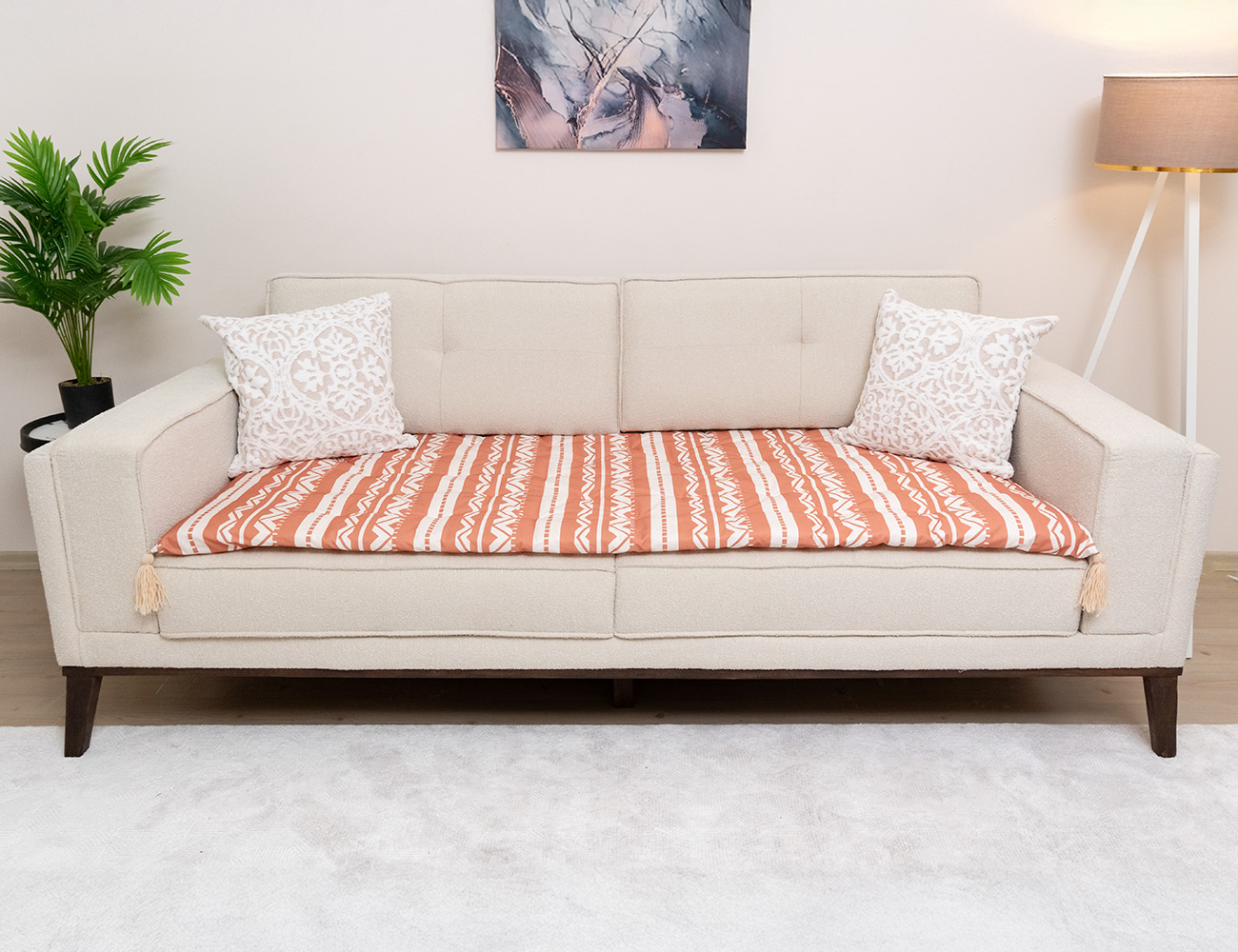 Turuncu Beyaz Modern Desenli Kanepe Koltuk Örtüsü Fiyat aralığı: 975,00₺ - 2.050,00₺