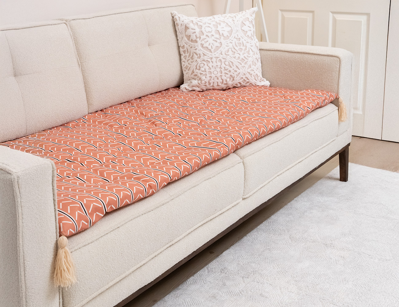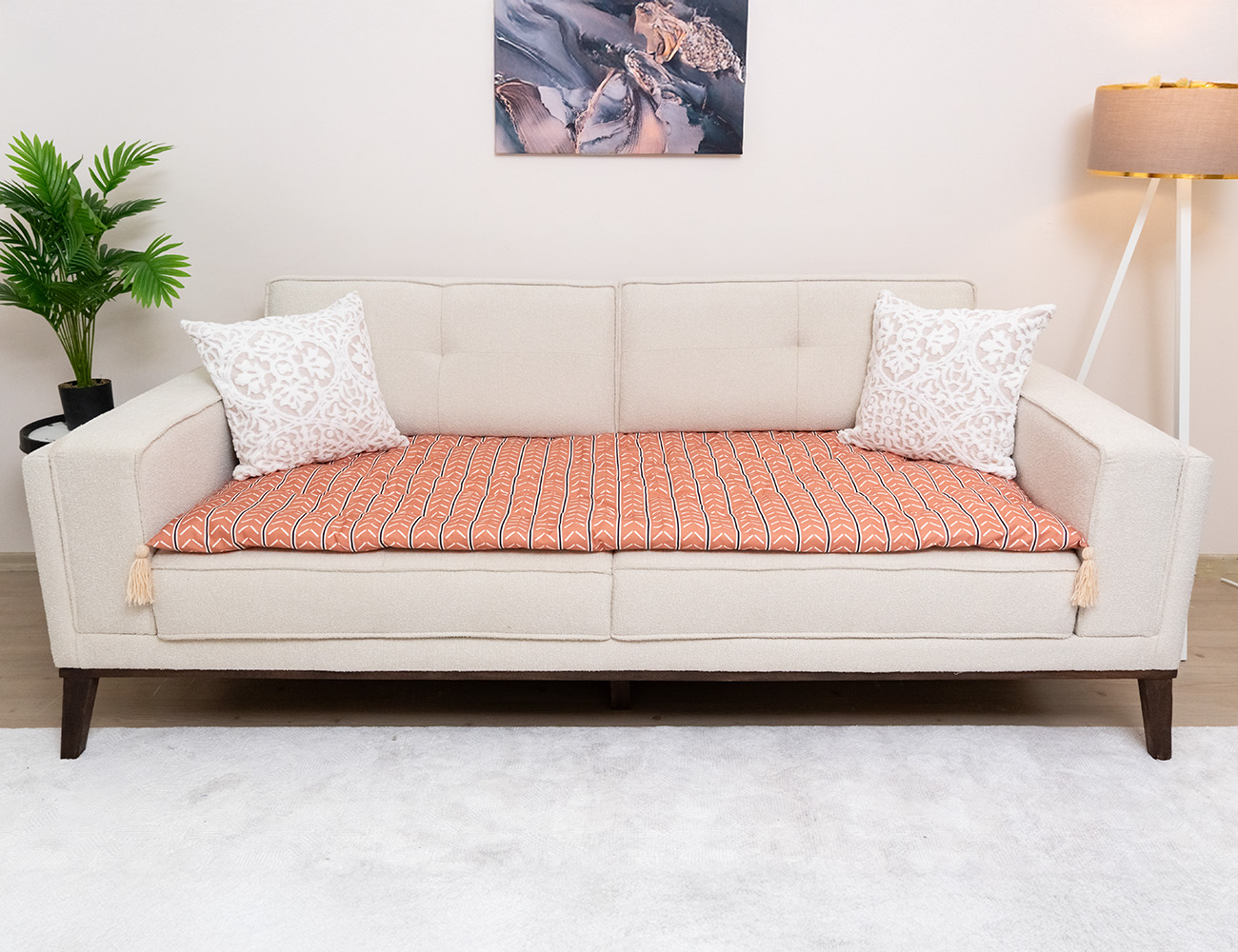 Turuncu Beyaz Etnik Şerit Desenli Kanepe Koltuk Örtüsü Fiyat aralığı: 975,00₺ - 2.050,00₺