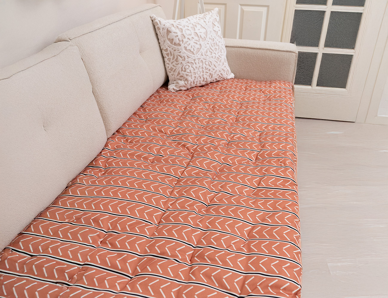 Turuncu Beyaz Modern Desenli Kanepe Koltuk Örtüsü