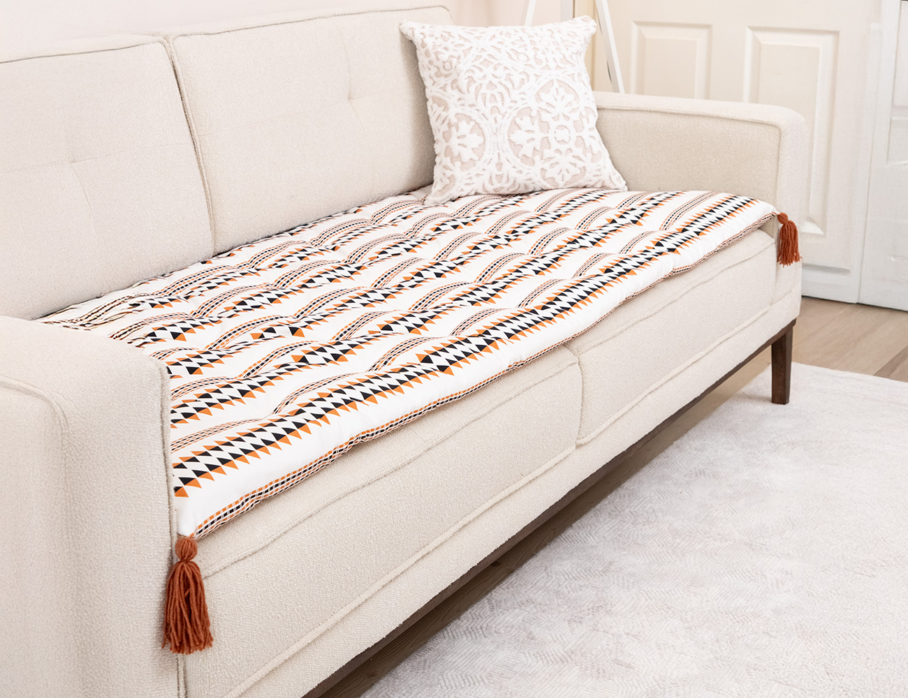 Turuncu Siyah Üçgen Desenli Kanepe Koltuk Örtüsü