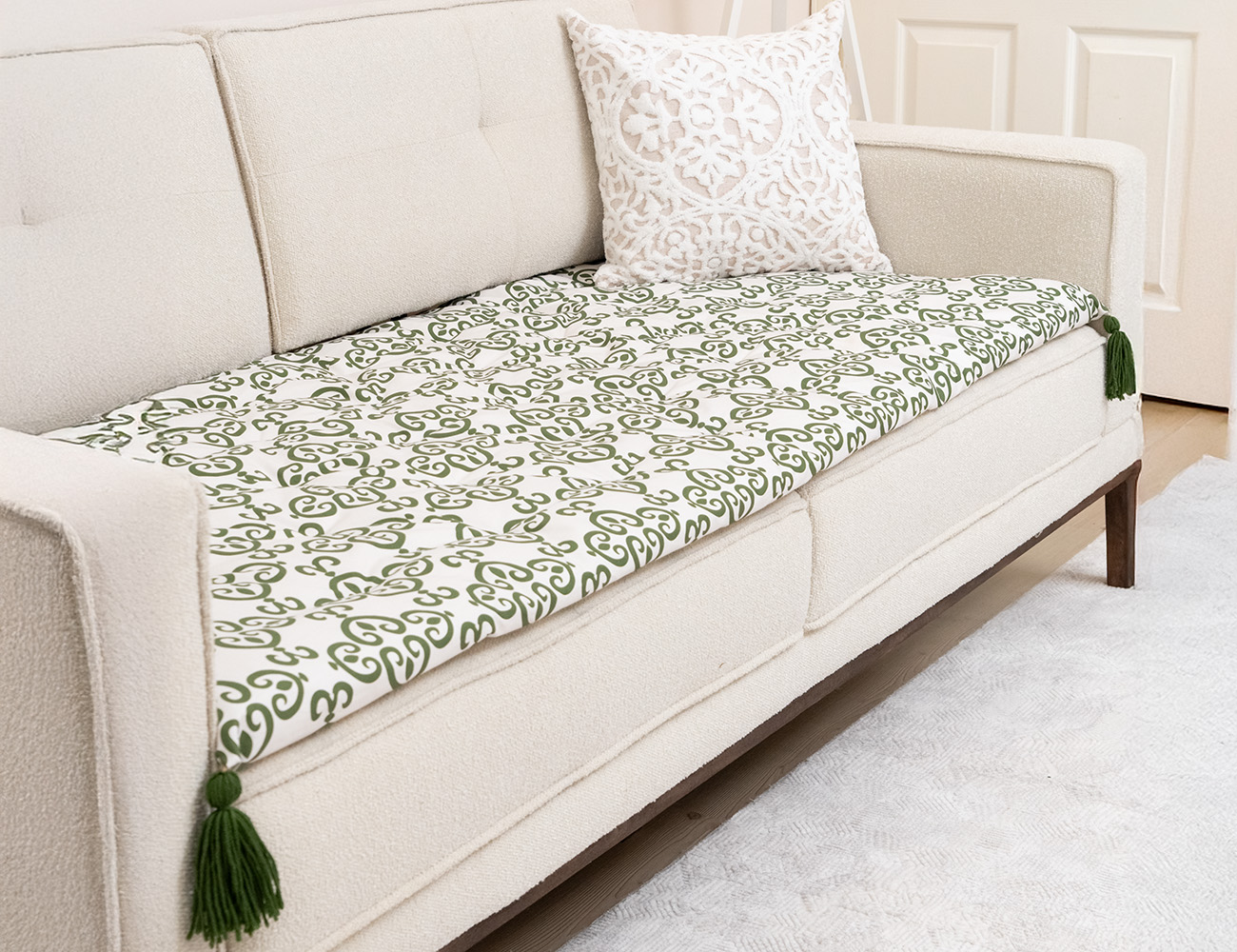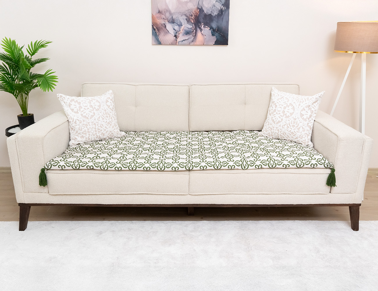 Yeşil Beyaz Modern Arabesk Desenli Kanepe Koltuk Örtüsü