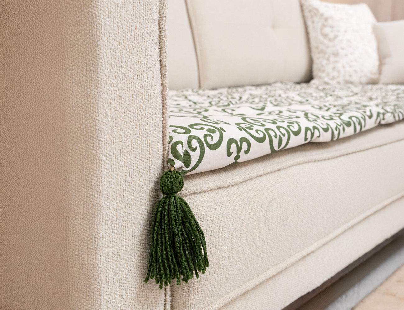 Bej Renk Yonca Desenli Kanepe Koltuk Örtüsü